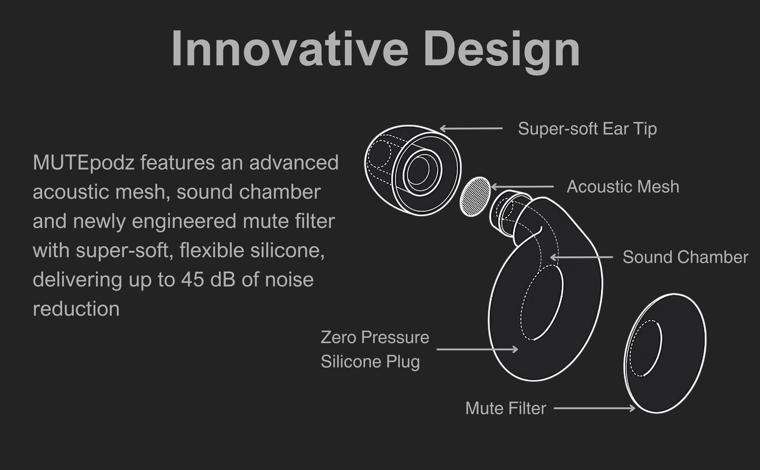 MUTEpodz use advanced acoustic isolation technology and multiple layers of silicone to reflect and absorb sound waves, reducing noise by up to 45dB. The ear plugs block low-frequency sounds while allowing essential mid-to-high frequencies, giving you clarity and peace in noisy environments.