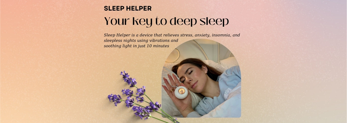 The Sleep Helper is placed on your hand, emitting soothing pulses like a gentle massage for your nervous system